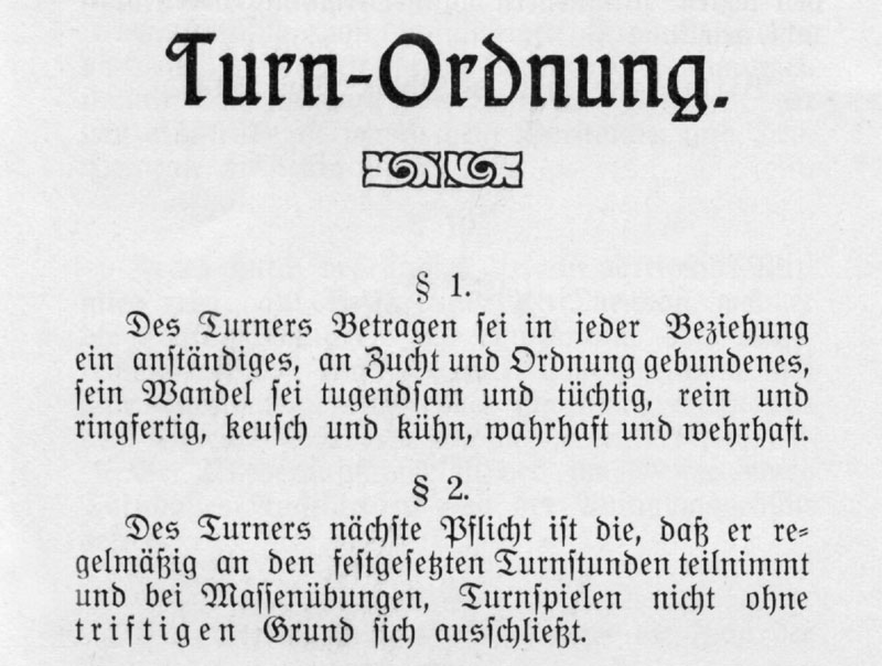 Für die Vereinsorganisation erließ die Gründungsversammlung eine Satzung sowie eine eigene Turnordnung.